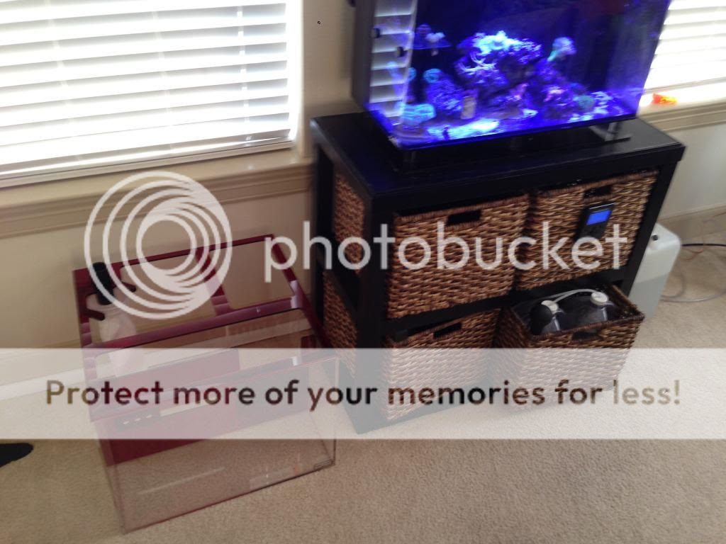 After moving and downsizing I am finally ready to upsize again to a rimless 60 gal cube with external overflow. The tank is being made right now by Planet Aquariums out of Dallas (I hear nothing but great things). I've made a 3D model to get an idea of the system and will update as I get the exact dimensions of the overflow etc to plan.